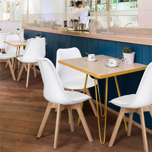 - EXQUISITE CRAFT & DESIGN: The seat and the backrest are in one piece. Attractive seats match beech wood legs, which makes the chairs durable and comfortable and easy-to-assemble. Our modern dining chairs perfectly combine good looking and exquisite workmanship.