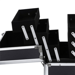 - Inside the makeup case has six accordion-style trays that help sort small items. The bottom no-baffle compartment keeps relatively larger items handy and organized.