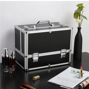 - The makeup case is secured by 2 metal locks on the top, 2 keys included.
